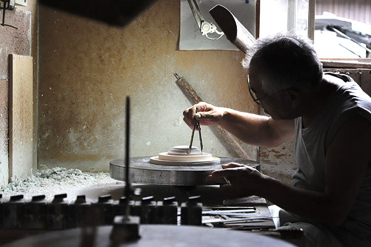 ARITAJIKIシリーズはデザイン、成形、型づくり、土づくり、焼成、絵付けなど、各分野のプロフェッショナルが協力し生み出されます。スッとカンナを当て、エッジをよりシャープに出すひと手間。長く培った感覚や技はミニマムな形状の中に脈々と活かされています。