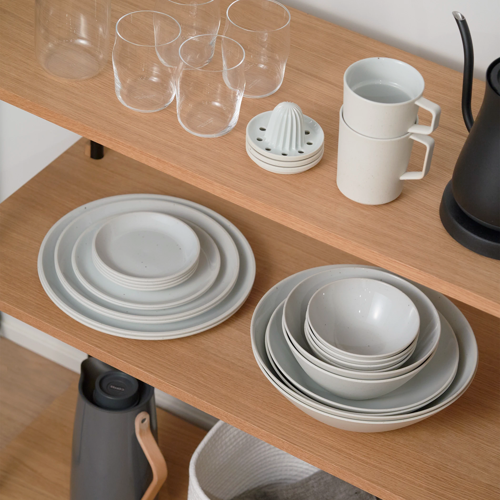 各サイズのプレート、ボウル、マグはそれぞれ綺麗に重なり人数分の器を揃えてもスッキリ収納できます。電子レンジ、オーブン、食洗機など様々なニーズに対応できます。ほっと一息つく時間にぜひARITA JIKIを。
