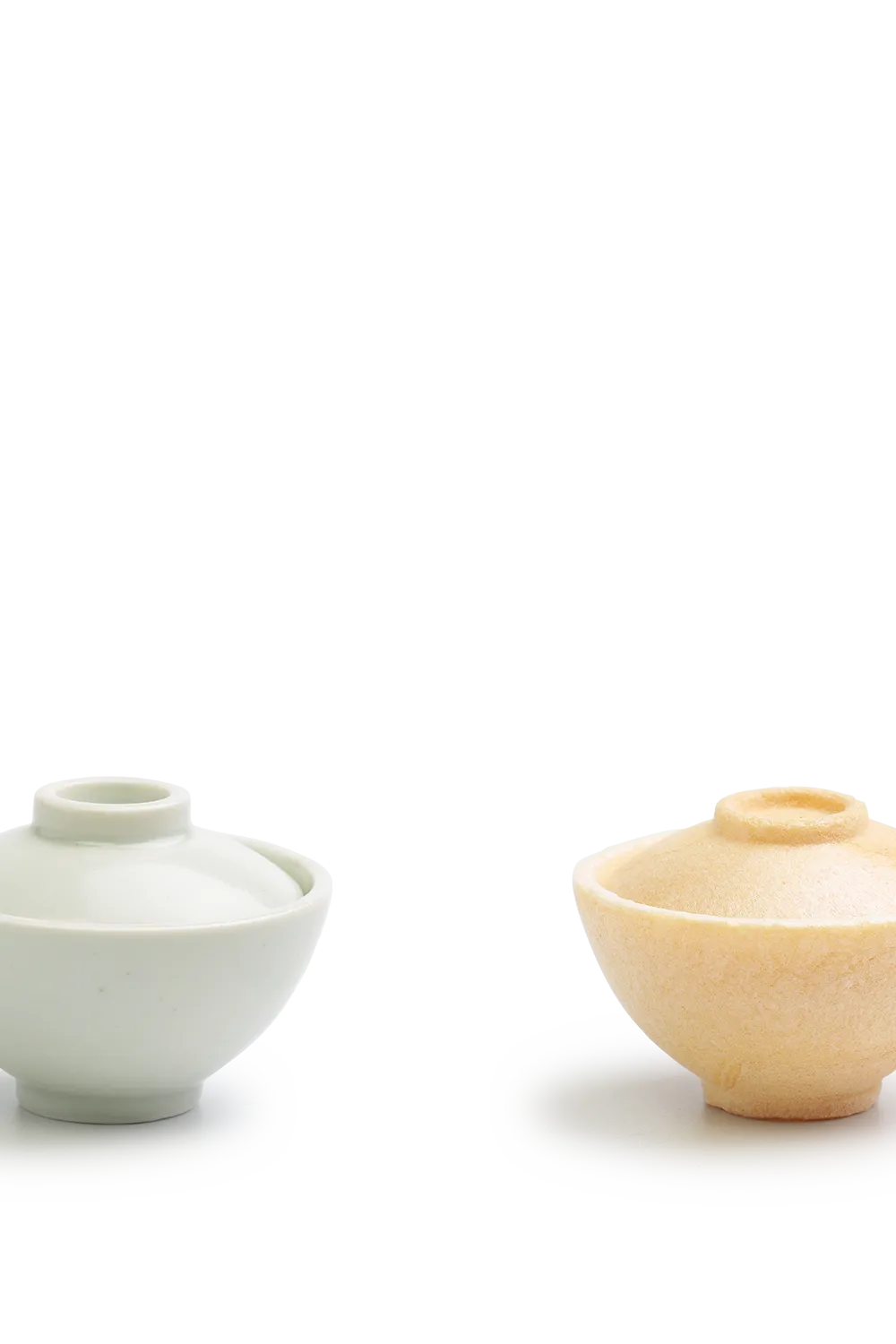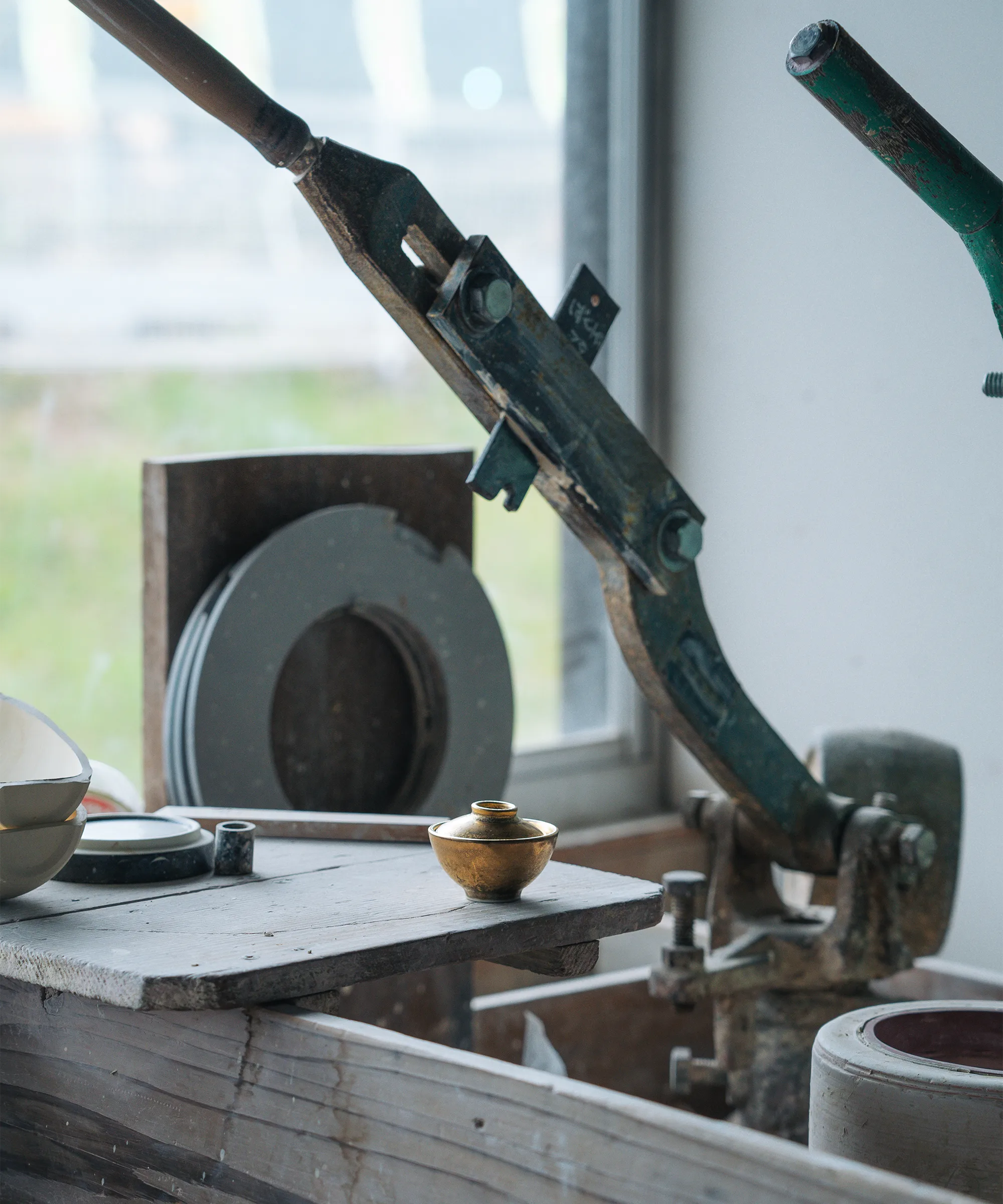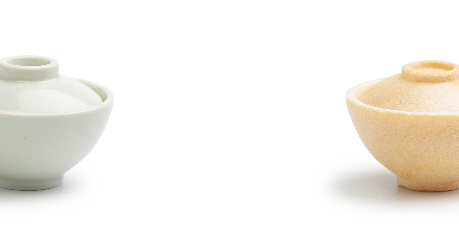 食器に限らずインテリアアイテムから文房具まで磁器という素材をつかって幅広いジャンルの商品開発にチャレンジされています。今回は青磁の釉薬で焼き上げたあとにサンドブラストで表面をマットな質感にし、昔からある釉薬を現代的に仕上げていただきました。