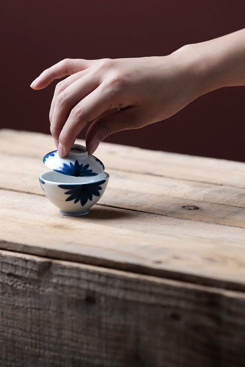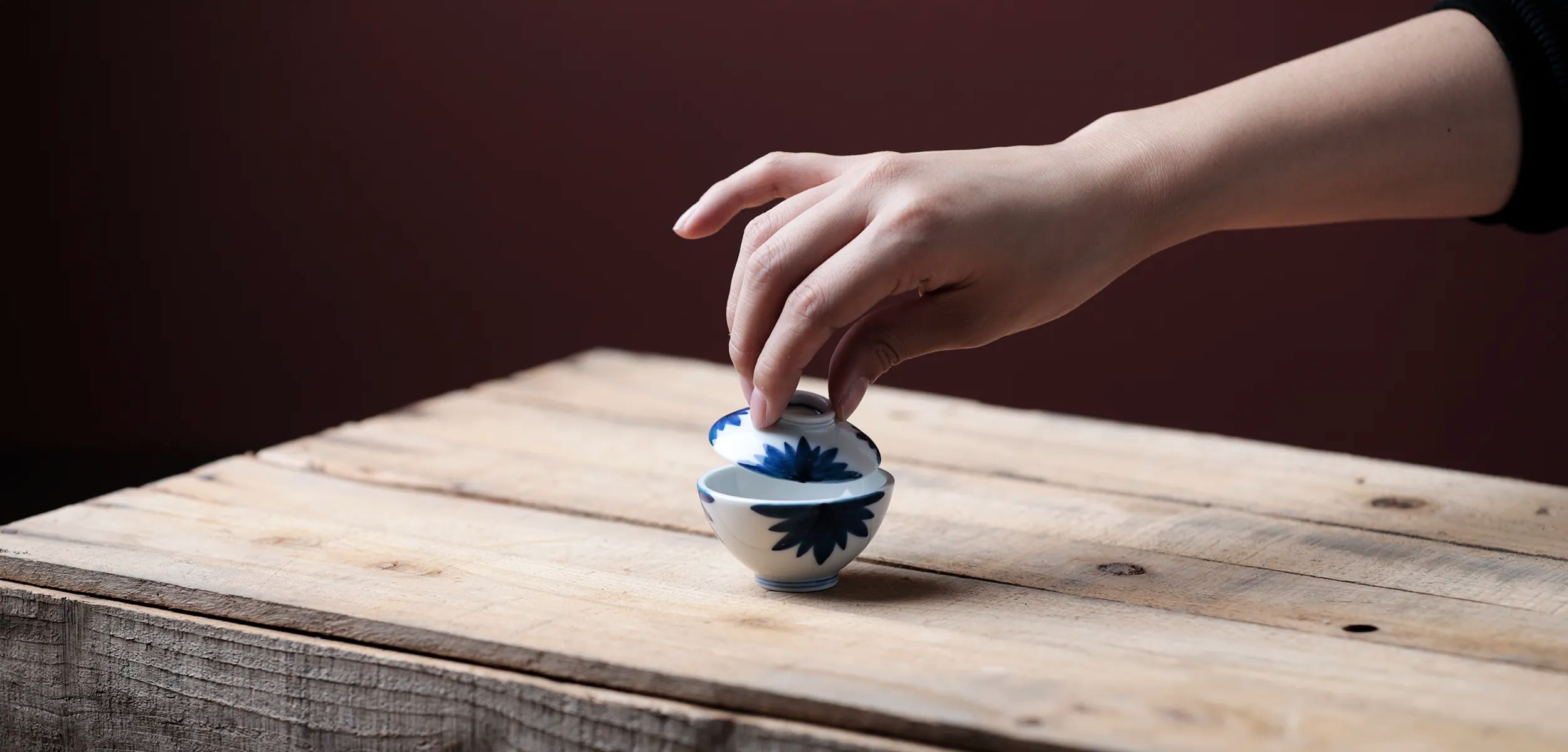 華やかさというより、暮らしの中にすっと馴染み、気持ちが和む有田焼が魅力の晧洋窯さん。手間を惜しまず手描きに拘り丁寧に作陶に励まれています。今回は有田焼の伝統絵柄を手描きで施していただきました。イスノキの灰を原料とする釉薬を使用し、ふんわりと優しい印象の絵付けに仕上がりました。
