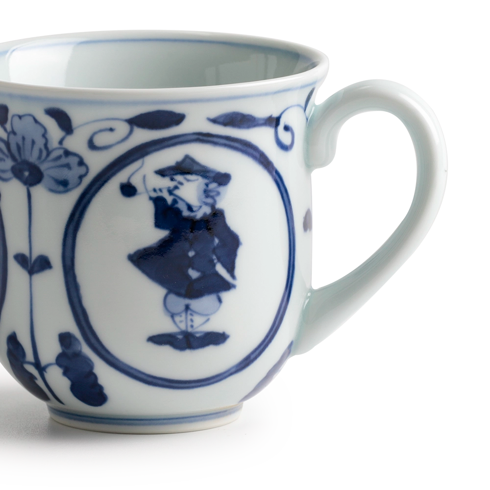 青花のカップ。マグやフリーカップ、コーヒーカップご用意。割れにくくて丈夫な青花のカップ類は長くお使いいただけます。少し大きめのマグや小さめのミニマグ。フリーカップとして使えるミルクカップ。少し特別な気分でコーヒーを楽しむカップ&ソーサーをご用意してます。