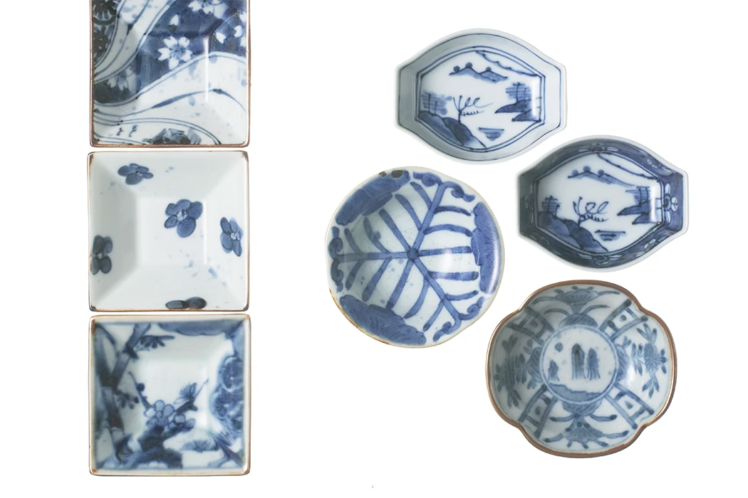 初期の有田焼はこれくらい青みがかったものでした。福泉窯さんの豆皿は骨董品のような風合い豊かな染付が魅力。手に取ると「良い器」とわかる上品で高級感のある佇まい。