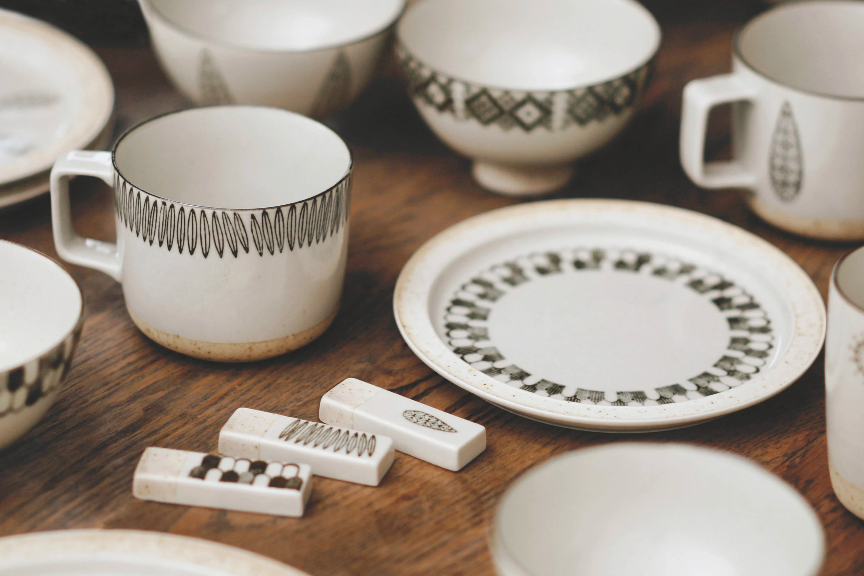 The kuppi series is produced using a technique called "inkante". For "potion" and "sasa", we dug up the stamps that have been sleeping in Arita's Taseigama kiln for a long time, changed the composition, stamping method, paint and texture, and re-edited them to create a modern design. A seal maker hand-carves the completed pattern design into a stamp, and a craftsman at the pottery hand-presses each stamp with rust glaze. Hand-drawn pattern design, hand-carved, hand-pressed stamps and three-step handwork create "variability". The new patterns "tile", "nord", and "pam" have been drawn to make use of the "variation" created by the three stages of handwork. hibi considers "good" the "variation" caused by nature and people, the characteristics of pottery and handiwork. The general image of Arita porcelain is that it is pure white and smooth and dyed, but the kuppi series explores other possibilities and uses the ancient technique of stamping, instead of pure white. I aimed for something new and nostalgic, a semi-matte rather than beige and smooth. As a result, wares with the strength and lightness of porcelain, as well as expressive expressions like pottery, were born.
