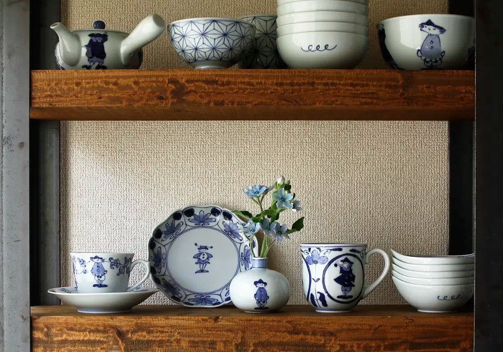Using clay, glazes, and paints developed in-house, we have developed a dyeing brand called ``Aoka'' with lovely patterns. You can often see designs of Dutch people and trading ships, which are arrangements of the traditional pattern ``Benimojin.'' There is also the ``Aoka Takumi'' brand created by traditional craftsmen.