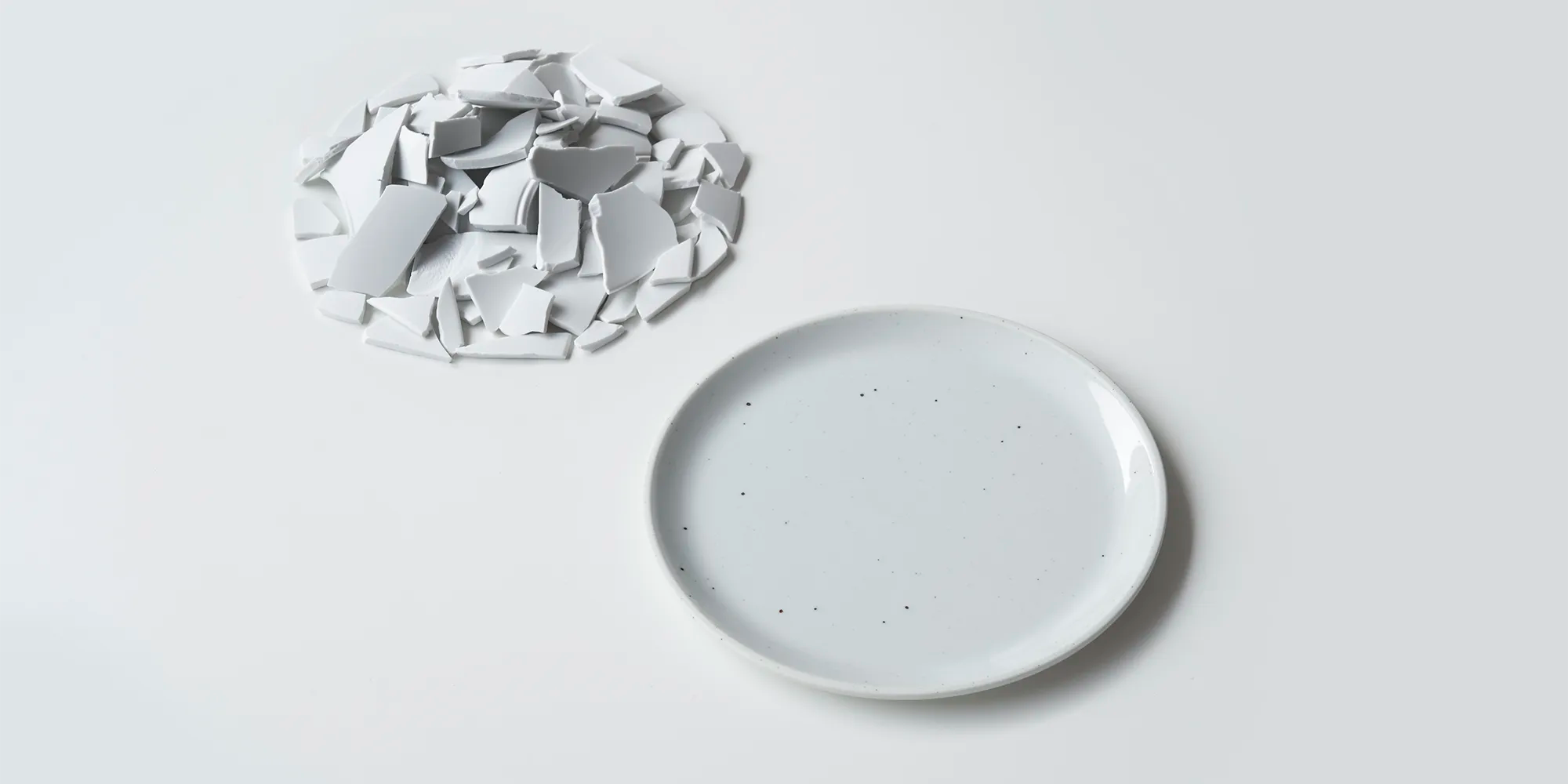 Arita-yaki and other types of pottery use natural raw materials, so they unintentionally crack or appear black spots. These are treated as B products, and those that cannot be sold are disposed of as industrial waste. I felt uncomfortable with this situation, and decided to pulverize and reuse it.