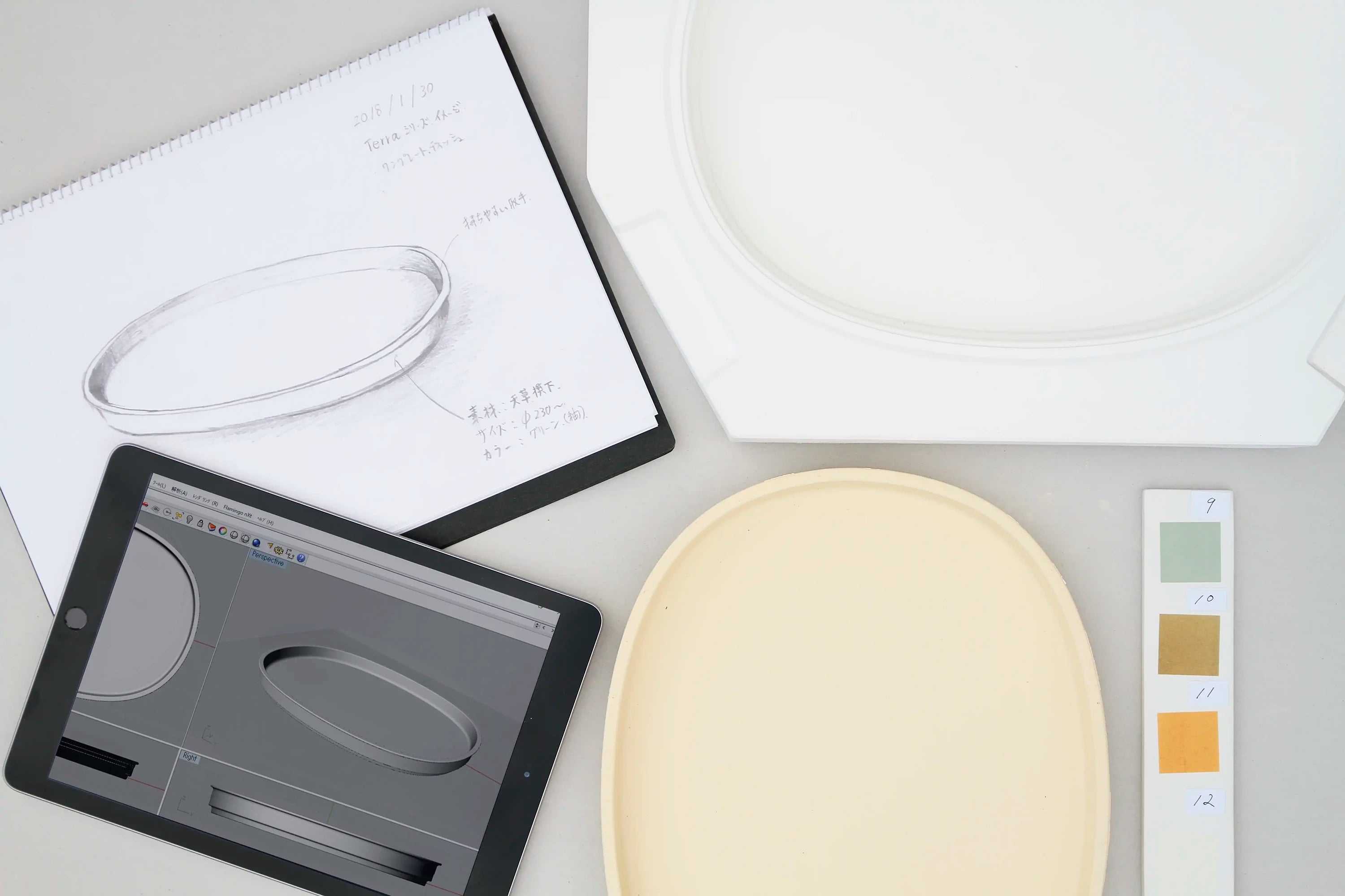 頂いた図面をもとに形状、色などすべてオリジナルの商品を開発できます。Realitaでは3DCADソフトを導入し、NC切削機を使用したより精度の高い型成型も可能です。また「アイデアはあるけど形にできない」そんな方のためにパートナーデザイナーと共に開発する事も可能です(別途有料)。陶磁器の素材を活かしたモノづくりに柔軟にお応えします。