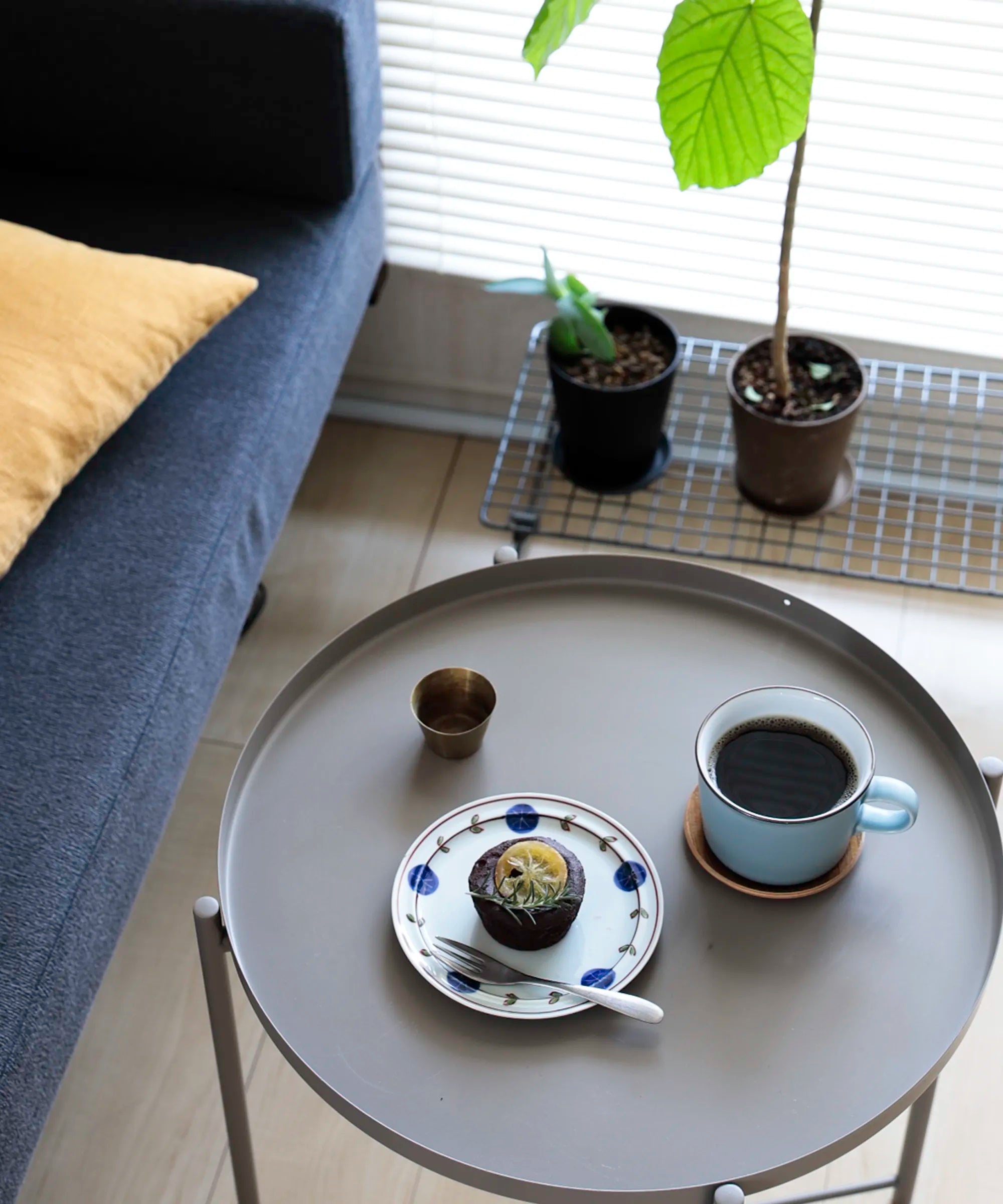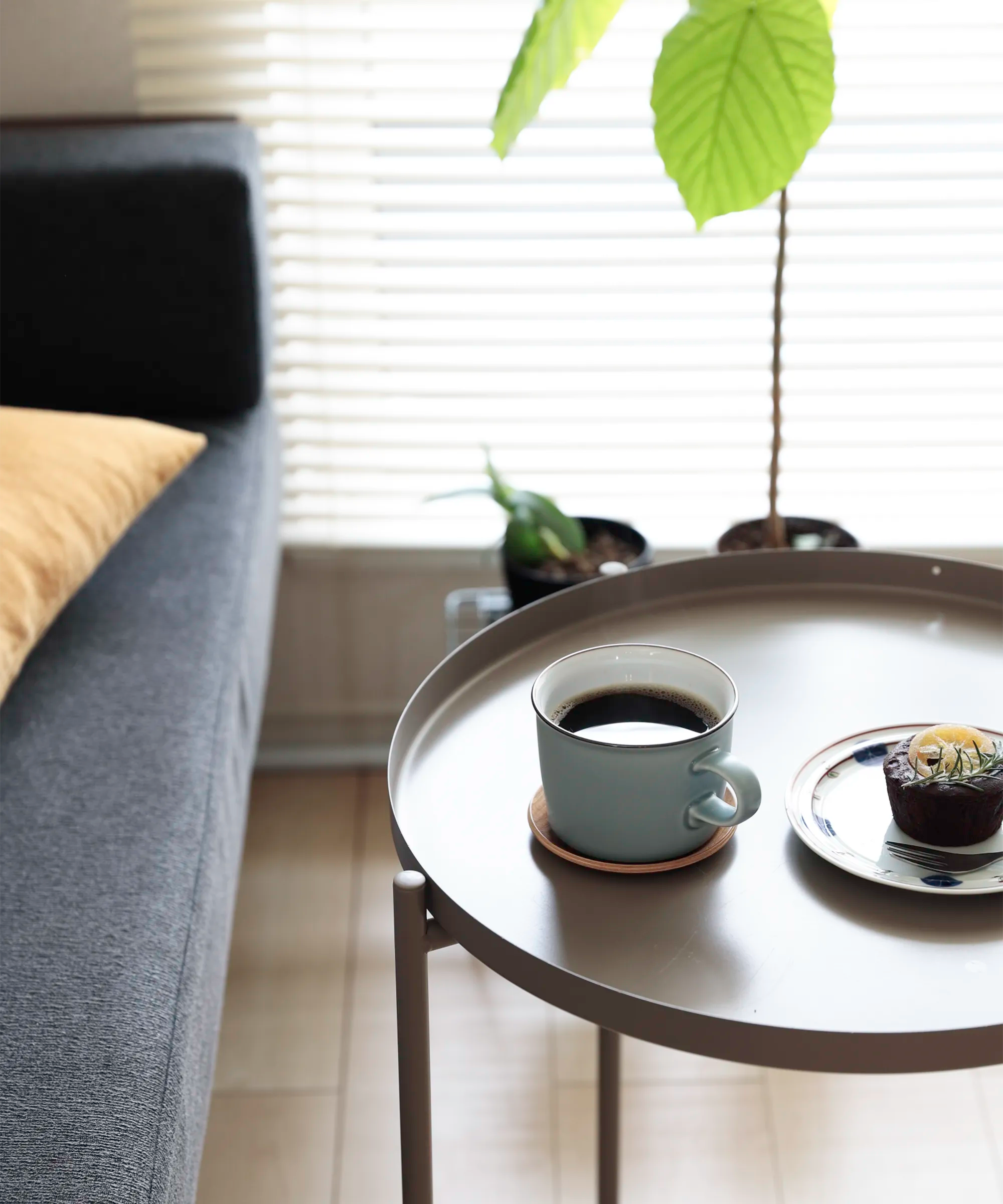 自宅で読書をしながらコーヒーを楽しむ。ニュアンスカラーで生活の中にすっと馴染む色合いです。